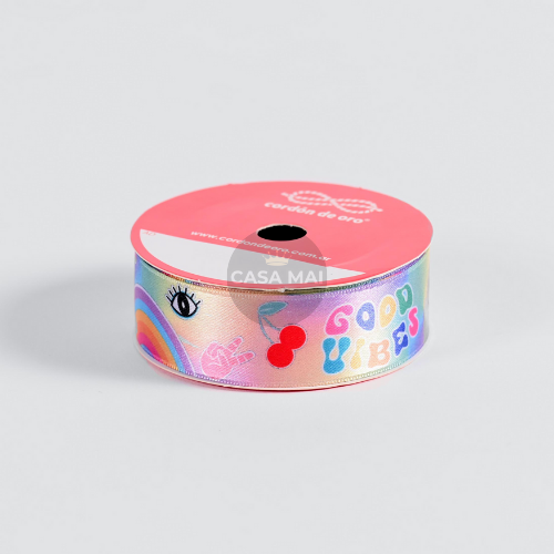 El estampado "Good Vibes" hace que esta cinta sea ideal para ambientaciones juveniles, regalos personalizados, emprendimientos creativos y todo lo que necesite un toque alegre y motivador.